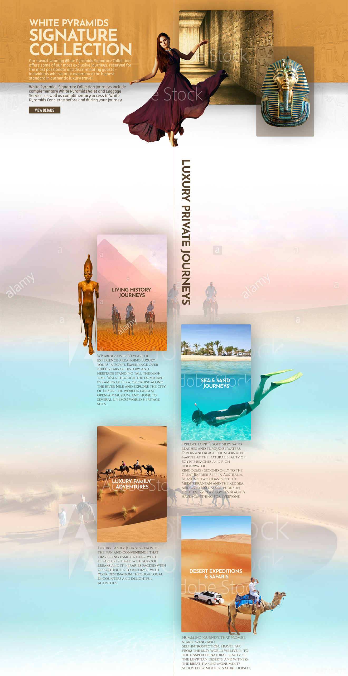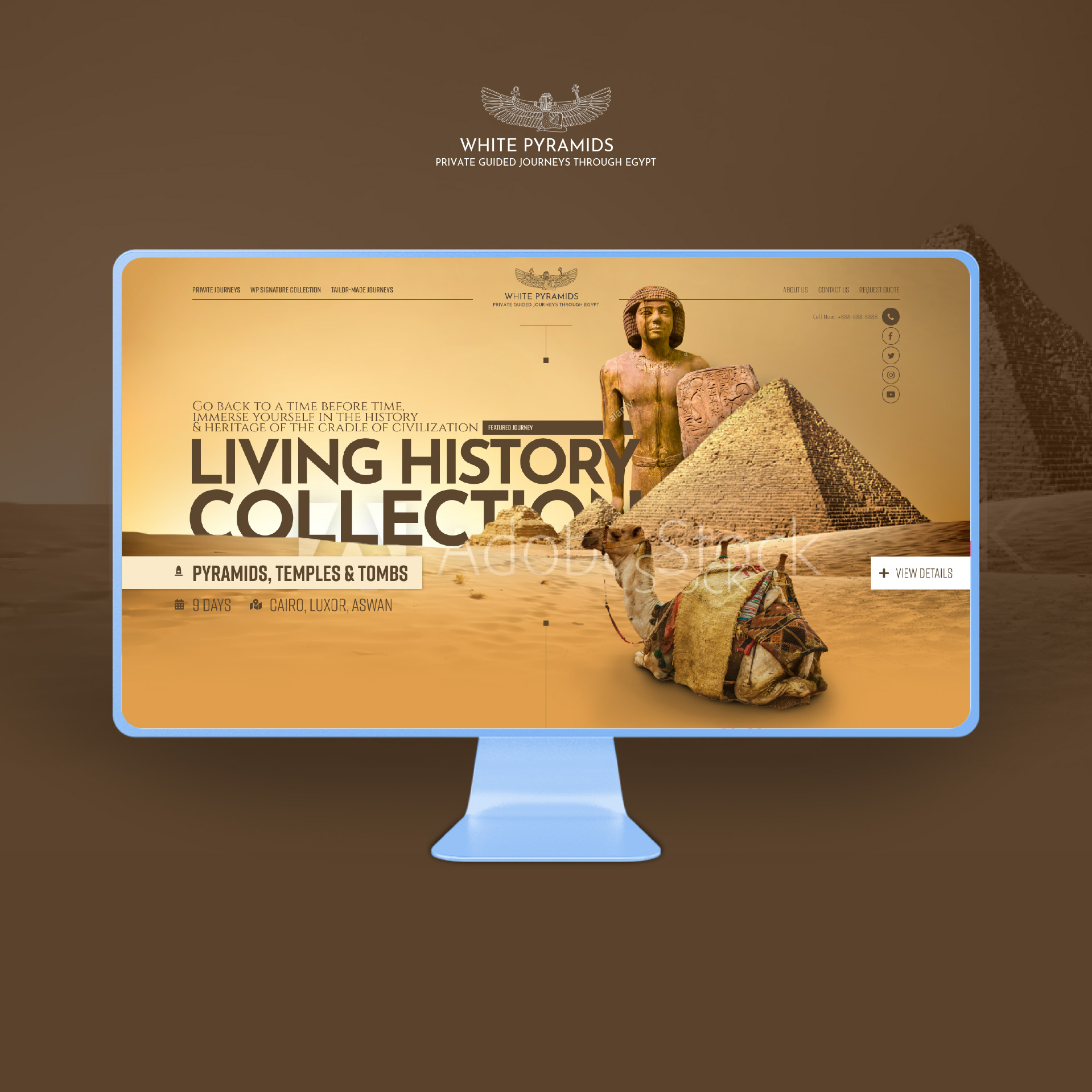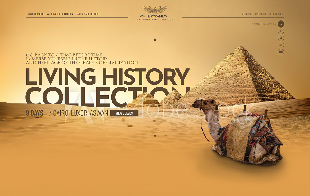 White Pyramids is a travel agency focusing on high quality tours in Egypt. Landing page design proposal made in 2019.